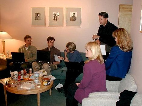 ![]() The Green room team inputs questions into the database: Ross, Abe, Erin, Randy, Sophie and Cheryl |